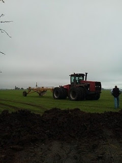 After working the ground for a long time with the back hoe, the land owner came out to give me a hand with this behemoth! Attached to back of this 50,000 lb., 8-wheel drive tractor is a 24' boxed blade that he built himself. AMAZING piece of machinery! and it could MOVE SOME DIRT! In no time at all he had brought the vast majority of the pond's depth down to about 16".